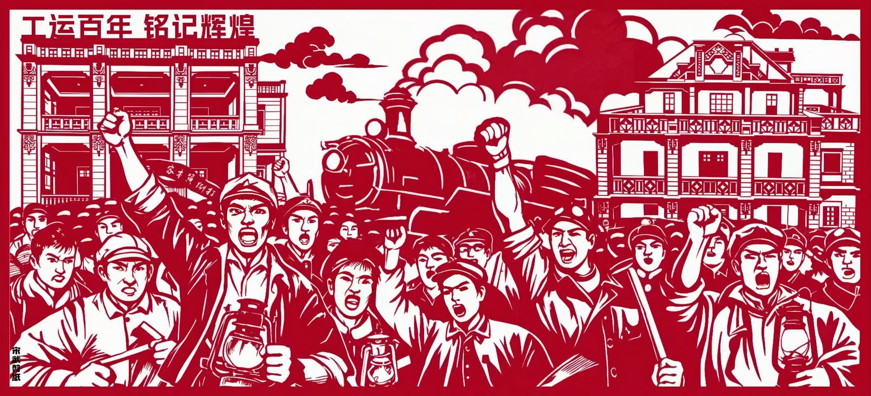 剪纸佳作《工运百年 铭记辉煌》(尺寸 60×30)